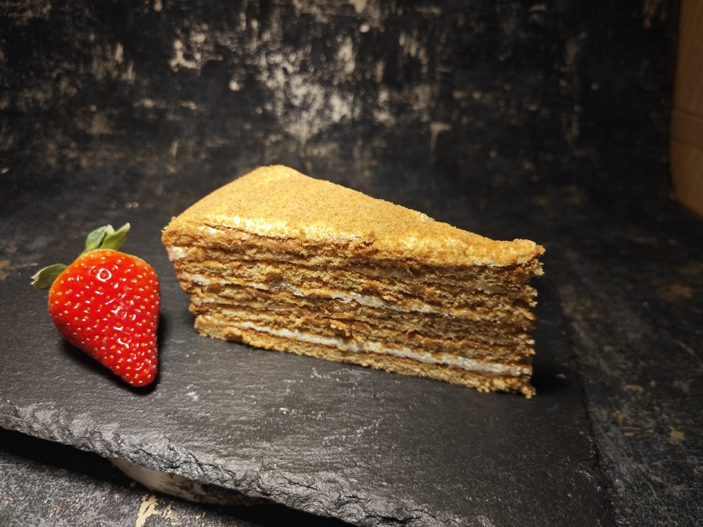 - Receptura prověřená generacemi – kombinace jemných medových plátů a bohatého krému s lehkým karamelovým podtónem, která vás přenese do dob, kdy se peklo poctivě a srdcem.