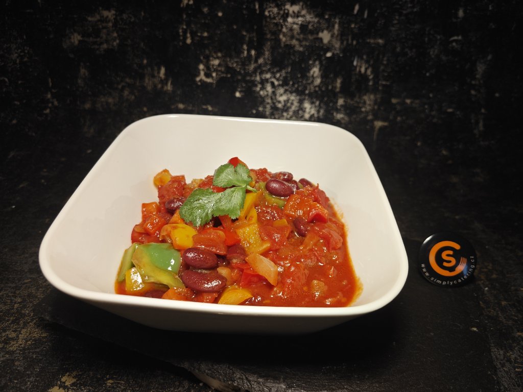 - Zapomeňte na nudné „bezmasé“ pokrmy. Naše veganské chilli je mistrovsky namíchané z cukety, cibule, lilku, červených fazolí, sekaných rajčat a aromatického koriandru. Každé sousto je exploze chutí, které si zamilují i zapřisáhlí masožravci.